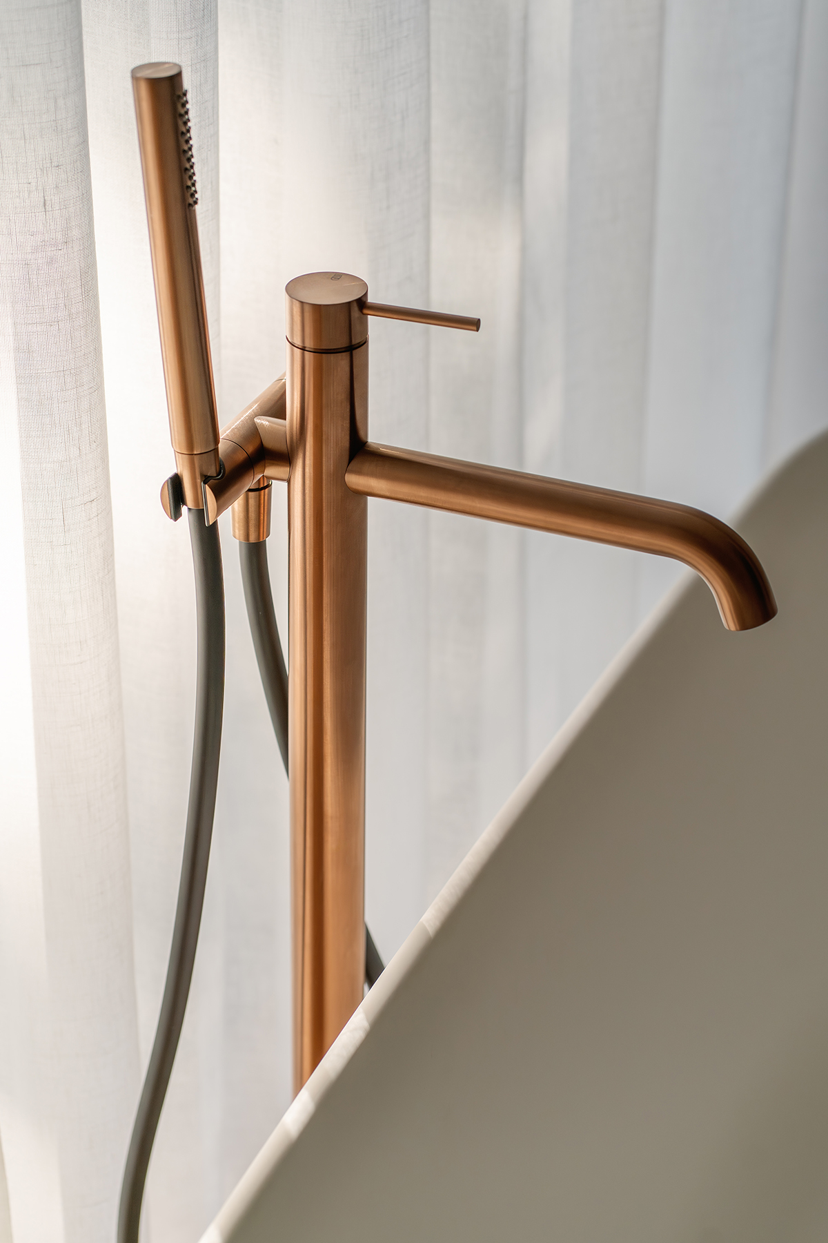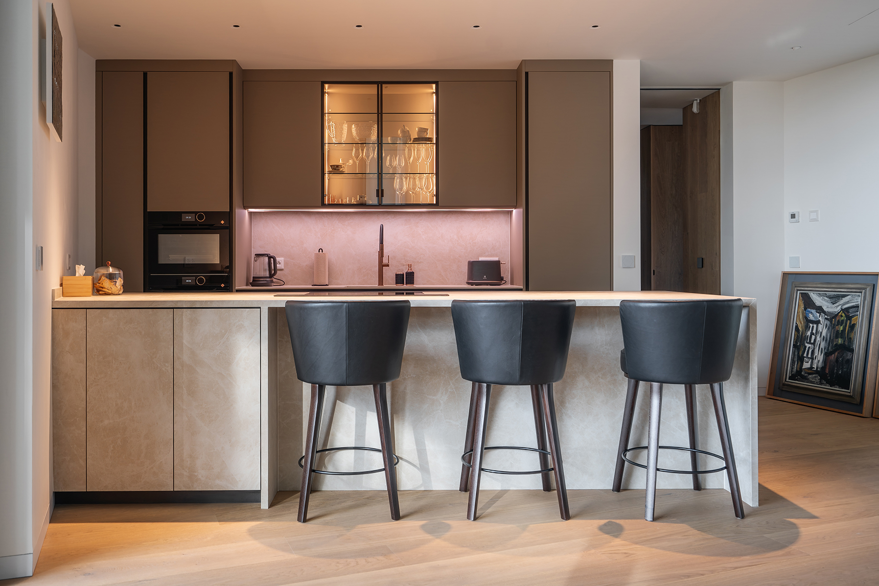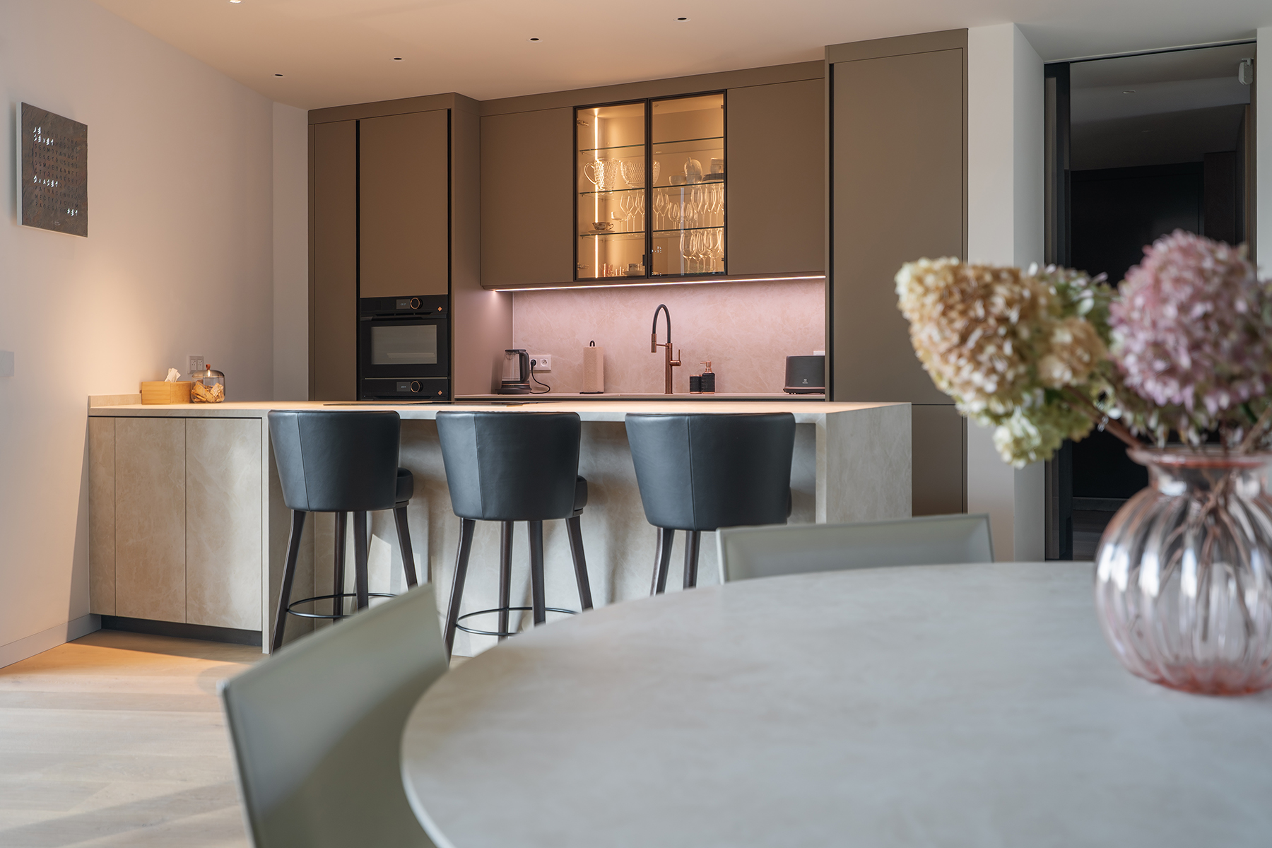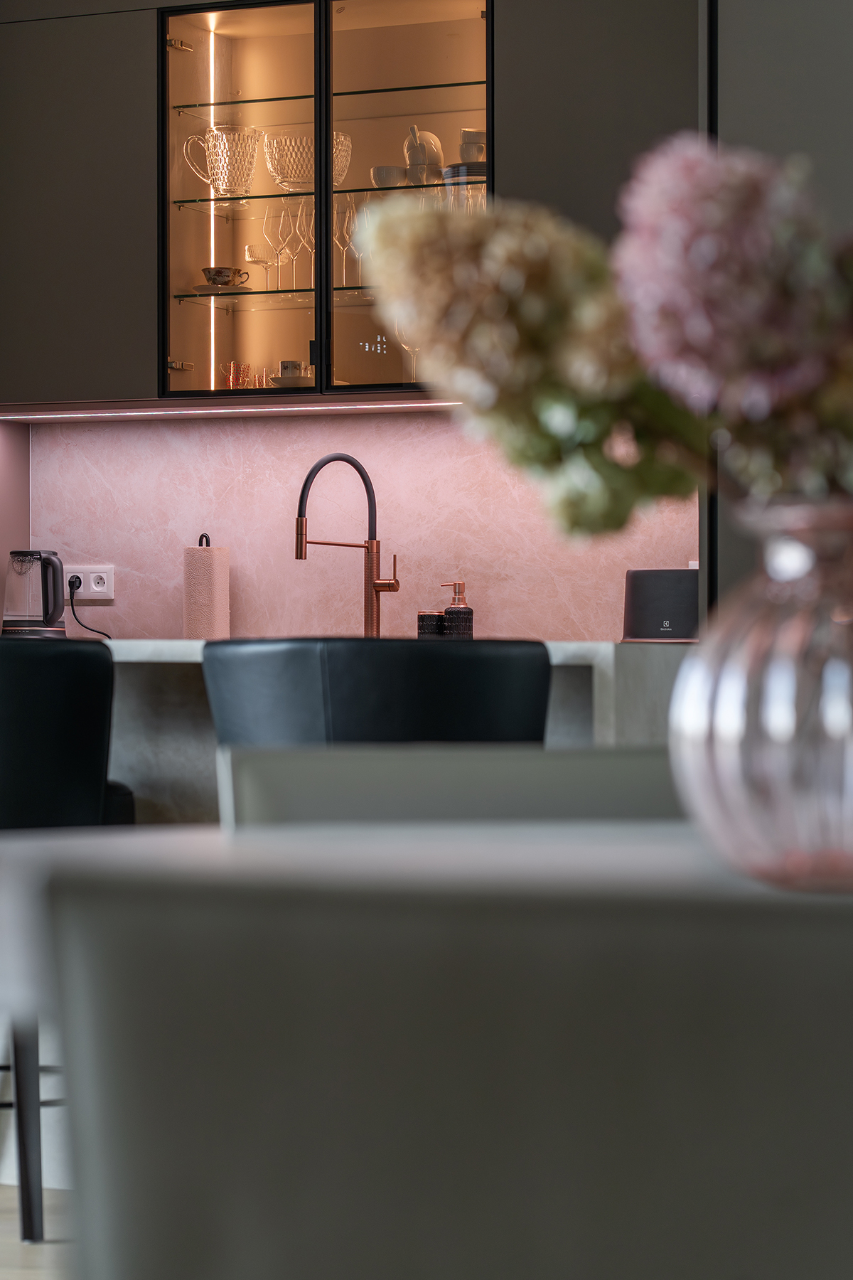 Kuchyně: baterie Gessi – 316, kuchyně Gamadecor, velkoformátový obklad Xtone – Ars Beige
